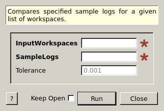 | SampleLogs | Input | str list | Mandatory | Comma separated list of sample logs to compare. |