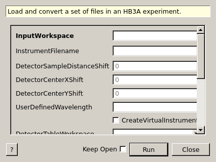 | InputWorkspace | Input | TableWorkspace | Mandatory | Name of table workspace for data file names in the experiment. |