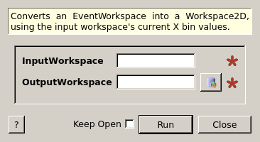 Converts an EventWorkspace into a Workspace2D, using the input workspace’s current X bin values.