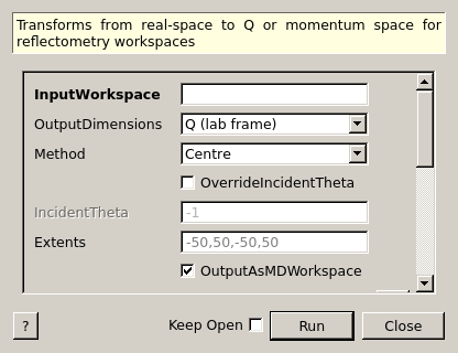 or momentum space for reflectometry workspaces. Prior to the transformation, the