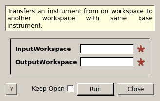 | OutputWorkspace | InOut | MatrixWorkspace | Mandatory | Name of the workspace receiving the instrument |