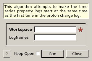 This algorithm attempts to make the time series property logs start at the same time as the first time in the proton charge log.