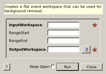 This creates a new event workspace from an existing one by sampling an area of the source workspaces background and then using this to create a new workspace that covers the same data range as the input workspace.