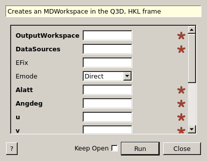 | OutputWorkspace | Output | MDEventWorkspace | Mandatory | MDEventWorkspace with new data appended. |