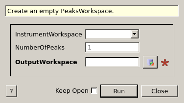 | InstrumentWorkspace | Input | Workspace | An optional input workspace containing the default instrument for peaks in this workspace. | |