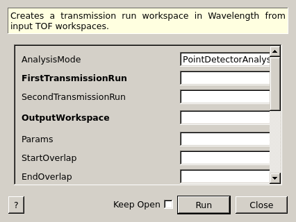 | SecondTransmissionRun | Input | MatrixWorkspace | Second transmission run workspace in TOF. | |