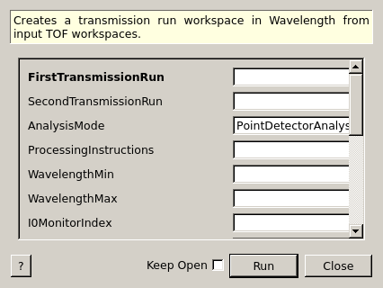 | SecondTransmissionRun | Input | MatrixWorkspace | Second transmission run workspace in TOF. | |