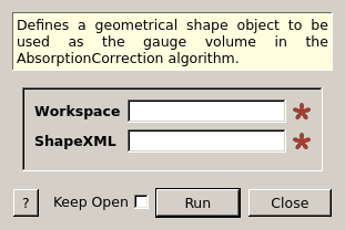 Defines a geometrical shape object to be used as the gauge volume in the AbsorptionCorrection algorithm.