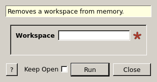 | Workspace | Input | Workspace | Mandatory | Name of the workspace to delete. |