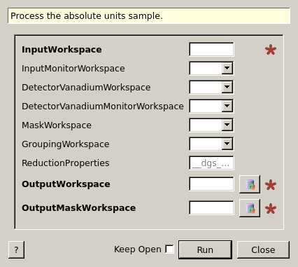 | InputWorkspace | Input | MatrixWorkspace | Mandatory | The absolute units sample workspace. |