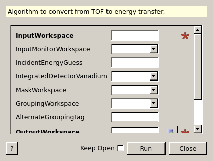 | OutputWorkspace | Output | MatrixWorkspace | Mandatory | The name for the output workspace. |