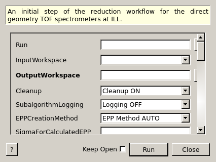 | EPPCreationMethod | Input | string | EPP Method AUTO | Method to create the EPP table for detectors (monitor is awlays fitted). Allowed values: [‘EPP Method AUTO’, ‘Fit EPP’, ‘Calculate EPP’] |