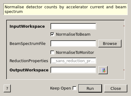 | BeamSpectrumFile | Input | string | Beam spectrum to be used for normalisation [takes precedence over default] | |