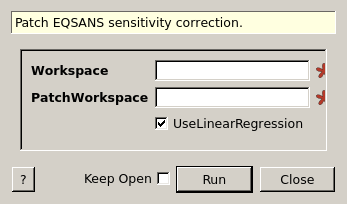 | Workspace | InOut | MatrixWorkspace | Mandatory | Input sensitivity workspace to be patched |