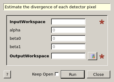 | InputWorkspace | Input | MatrixWorkspace | Mandatory | Workspace to have divergence calculated from |