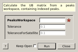 | PeaksWorkspace | InOut | PeaksWorkspace | Mandatory | Input Peaks Workspace |