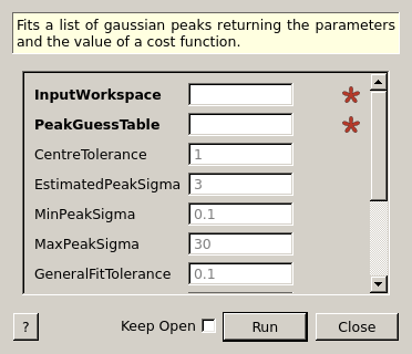 | PeakGuessTable | Input | TableWorkspace | Mandatory | Table containing the guess for the peak position |