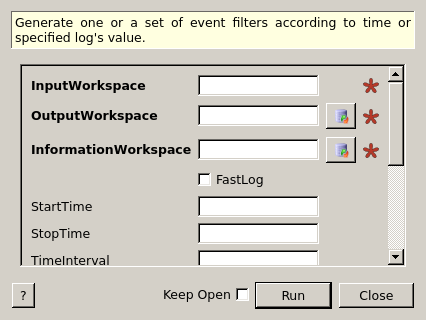 | TimeTolerance | Input | number | 0 | Tolerance in time for the event times to keep. It is used in the case to filter by single value. |