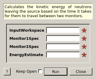 | EnergyEstimate | Input | number | Mandatory | An approximate value for the typical incident energy, energy of neutrons leaving the source (meV) |