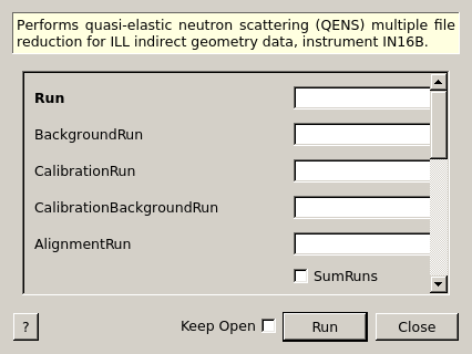 | Run | Input | list of str lists | Mandatory | Run number(s) of sample run(s). Allowed values: [‘nxs’] |