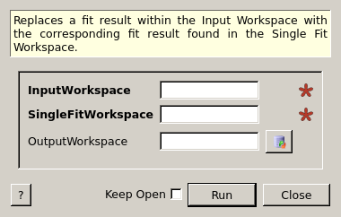 Replaces a fit result within the Input Workspace with the corresponding fit result found in the Single Fit Workspace.