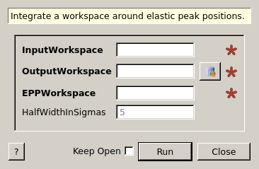 This algorithm integrates a workspace around the peak positions given in an elastic peak position (EPP) table. The integration is done using the Integration v1 algorithm. EPPWorkspace should be a table workspace in the format returned by FindEPP v2. The integration limits for workspace index