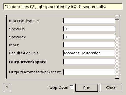 | InputWorkspace | Input | MatrixWorkspace | The input workspace for the fit. This property will be ignored if ‘Input’ is provided. | |