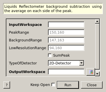 Used in the Liquids Reflectometer reduction at the SNS, this algorithm compute and subtracts the background from the reflectivity peak.