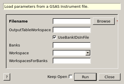 | Filename | Input | string | Mandatory | Path to an GSAS file to load. Allowed extensions: [‘.prm’] |