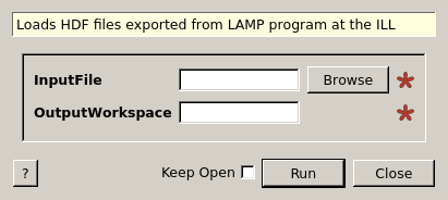 This algorithm loads processed HDF5 files produced by LAMP software at the ILL. Only 1D and 2D data are supported. The output is a point data workspace. The input file must have a tree structure similar to: