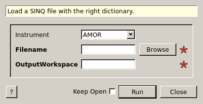 In most cases, the algorithm LoadSINQ v1 can be used instead, especially if the file is located in one of the standard data directories. LoadSINQFile is mainly useful if a SINQ-file from a specific path or a non-standard file name has to be loaded.
