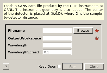 | WavelengthSpread | Input | number | 0.1 | Optional wavelength spread value to use when loading the data file (Angstrom). This value will be used instead of the value found in the data file. |