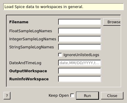 | IntegerSampleLogNames | Input | str list | List of log names that will be imported as integer property. | |