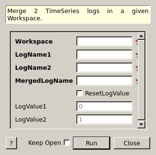 | Workspace | InOut | MatrixWorkspace | Mandatory | Workspace to have logs merged |
