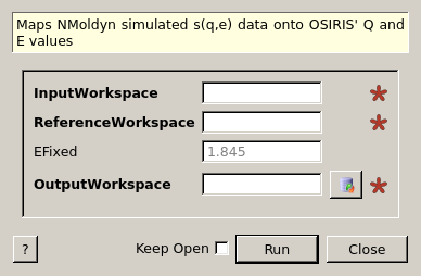 | OutputWorkspace | Output | Workspace | Mandatory | Output Workspace of remapped simulation data |