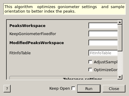 | OptimizeGoniometerTilt | Input | boolean | False | Set true if main error is due to a tilted Goniometer(def=false) |