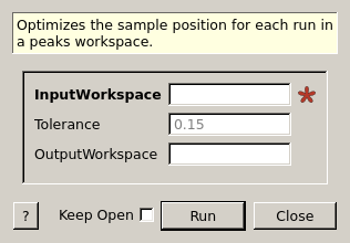 | InputWorkspace | Input | TableWorkspace | Mandatory | The name of the peaks workspace that will be optimized. |