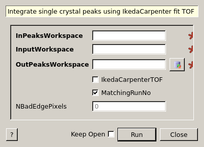 | OutPeaksWorkspace | Output | PeaksWorkspace | Mandatory | Name of the output peaks workspace with integrated intensities. |