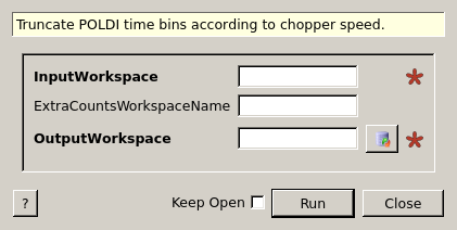 | OutputWorkspace | Output | MatrixWorkspace | Mandatory | Output workspace with truncated POLDI data. |