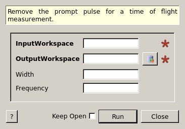 | Width | Input | number | Optional | The width of the time of flight (in microseconds) to remove from the data. |