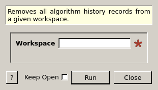| Workspace | InOut | Workspace | Mandatory | Workspace to remove the algorithm history from. |