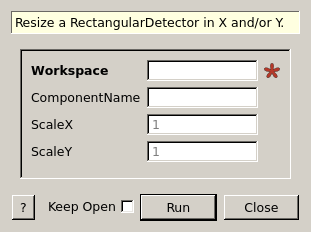 | ComponentName | Input | string | The name of the RectangularDetector to resize. | |