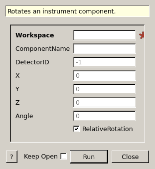 | ComponentName | Input | string | The name of the component to rotate. Component names are defined in the instrument definition files. | |