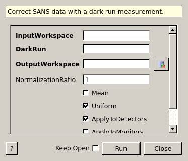 | NormalizationRatio | Input | number | 1 | Number to scale the dark run in orderto make it comparable to the SANS run |