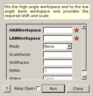 | HABWorkspace | Input | MatrixWorkspace | Mandatory | High angle bank workspace in Q |