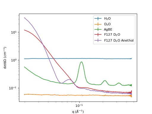 sample_legends = ['H$_2$O', 'D$_2$O', 'AgBE', 'F127 D$_2$O', 'F127 D$_2$O Anethol']