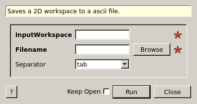 | InputWorkspace | Input | MatrixWorkspace | Mandatory | The name of the workspace containing the data you want to save. |