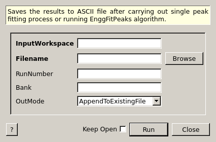 Saves the results to ASCII file after carrying out single peak fitting process or running EnggFitPeaks algorithm.
