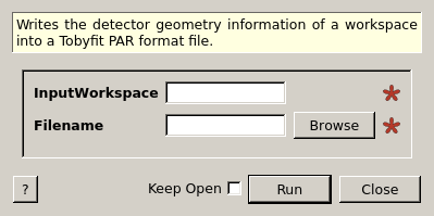 Saves the geometry information of the detectors in a workspace into a PAR format ASCII file. The angular positions and linear sizes of the detectors are calculated using FindDetectorsPar v1 algorithm.