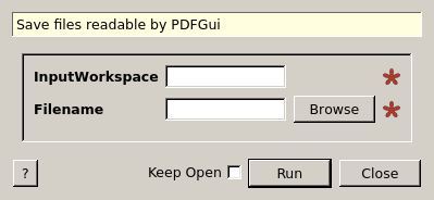 | Filename | Input | string | Mandatory | The filename to use for the saved data. Allowed extensions: [‘.gr’] |